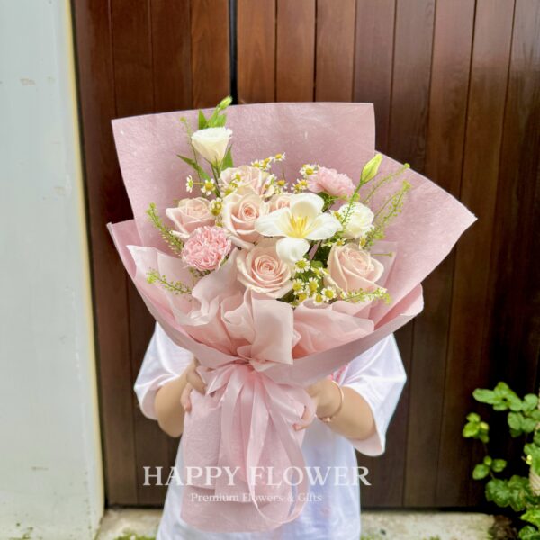 - Chất lượng & kích thước hoa to nhỏ tuỳ vào điều kiện thời tiết của nhà vườn từng ngày (mưa bão, ngày lễ). Happy Flower luôn ưu tiên chọn hoa đẹp nhất trong ngày để làm cho khách hàng.