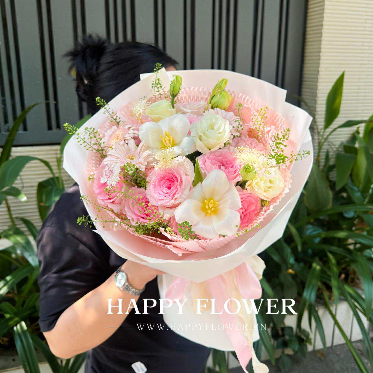 BÓ HỒNG LẠC THẦN MIX TULIP TRẮNG (small size)